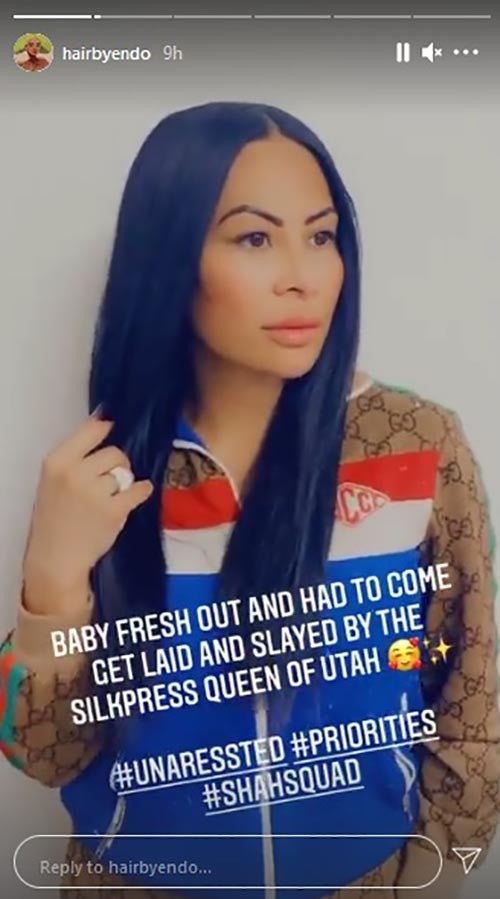 Ahead of her court appearance on Friday, Shah paid a visit to her hairdresser, Endo. Endo shared an Instagram Story video of 47-year-old Shah showing off her fresh ‘do, writing, “Baby fresh out and had to come get laid and slayed by the silkpress queen of utah. #unarrested #priorities #shahsquad.”