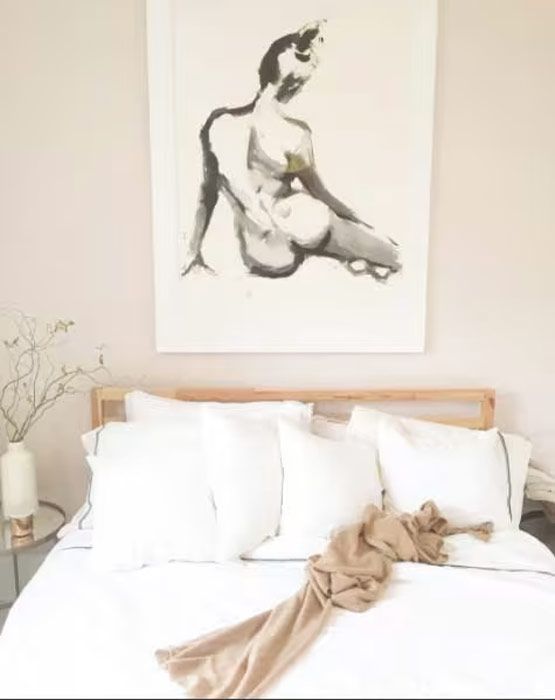 The guestroom was also decorated in neutral tones, with white bedding and a cosy throw. A figure study watercolour painting by New York based artist and illustrator Inslee Fariss – estimated to cost £520 – hangs above the bed in this room. Meghan is clearly a fan of this artwork, she captioned the photo: “Welcome home beauty.”