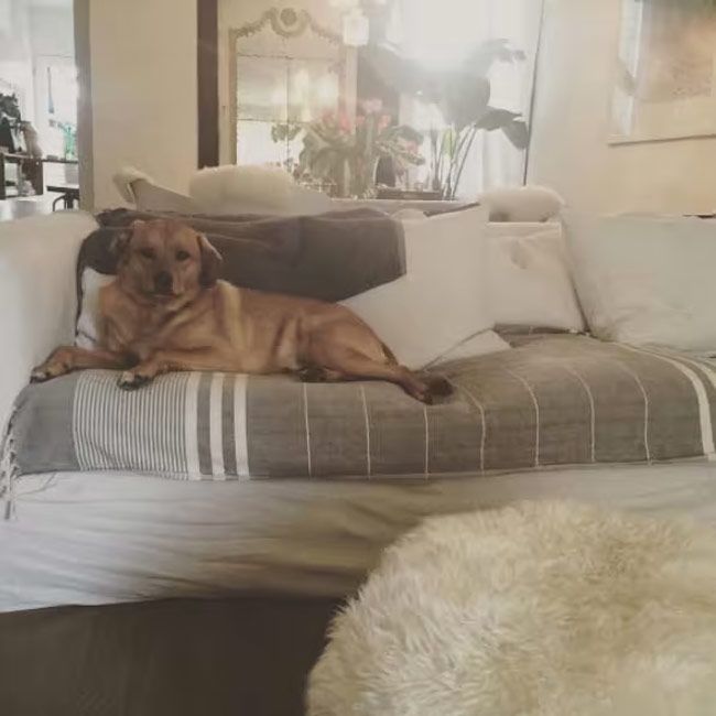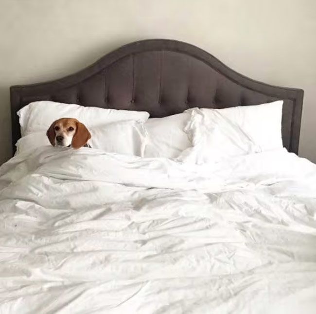 Meghan’s double bed appeared to attract her pet dogs Guy and Bogart from time-to-time, however the Suits star has admitted she would only let them on her white sheets on “laundry day”. Posting this photo of her dog Guy in January 2016, she wrote: “Laundry day. He’s allowed. #adoptdontshop #snowday #laymedowninsheetsoflinen.”