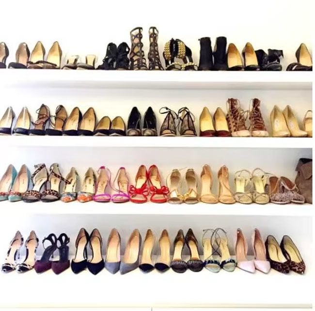 Talk about wardrobe envy! Meghan had an entire shelving unit dedicated to displaying her impressive footwear collection, which includes heels from Christian Louboutin and Miu Miu plus her go-to designer Sarah Flint. Although the stylish actress has previously said she likes “monochromatic and tonal dressing”, it appears she adds a pop of colour with her footwear collection which includes bold red, fuchsia and leopard print designs.
