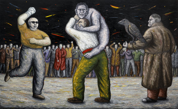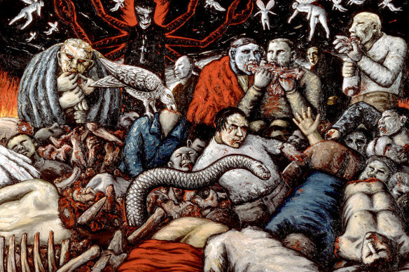 Amid all the breathtaking images assembled at TarraWarra, there’s one that niggles, by virtue of its relative calmness as much as anything else. Painting 1989 (1989) depicts a bald-headed man in an overcoat and a red muffler, standing in the snow. The longer I looked at this unassuming figure, the more closely it resembled Vladimir Putin, who has done more than anyone on the planet over the past year to dissolve the line between nightmares and reality.